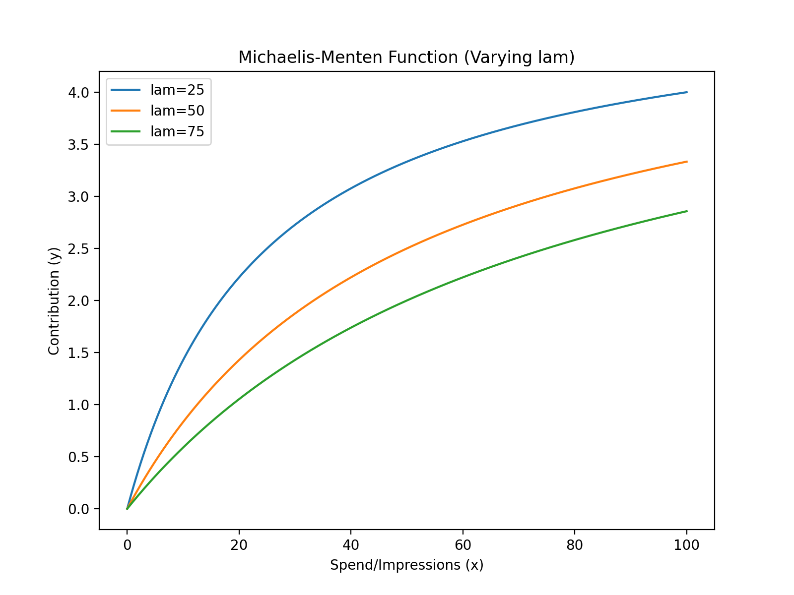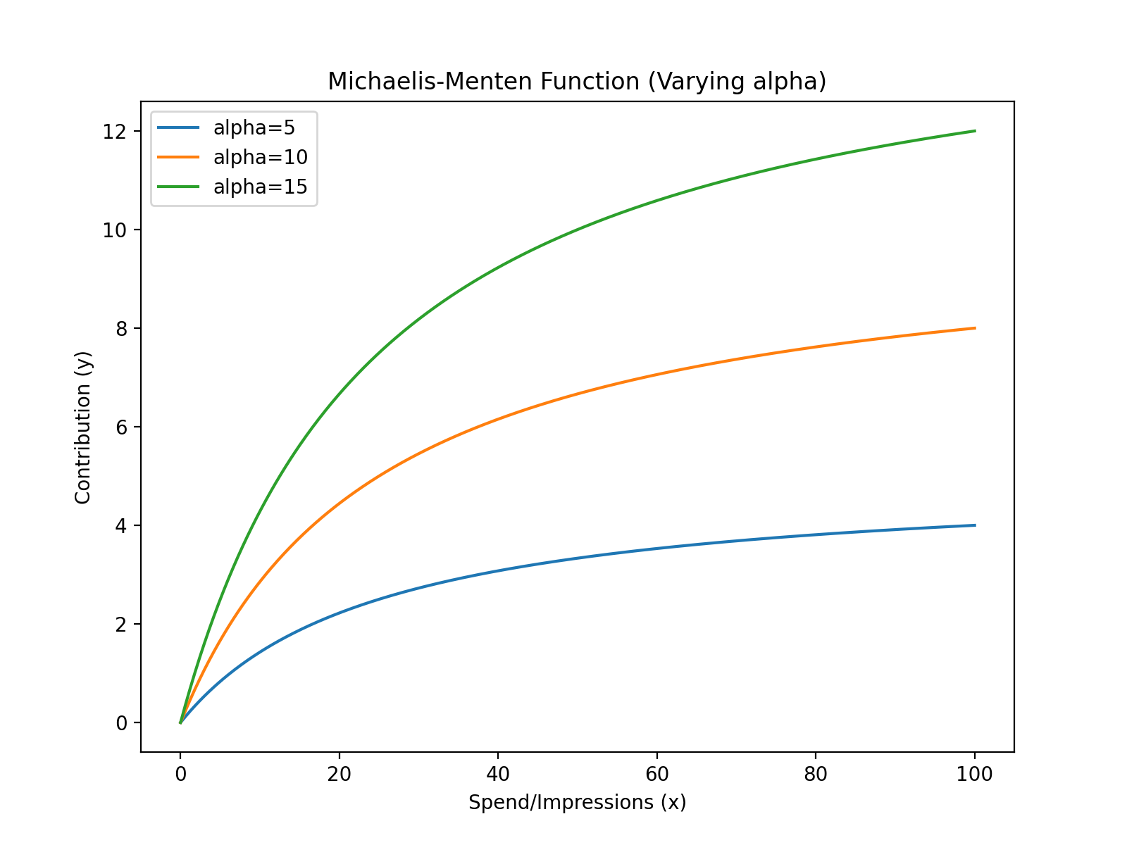 \(x\): Channel spend or substrate concentration.